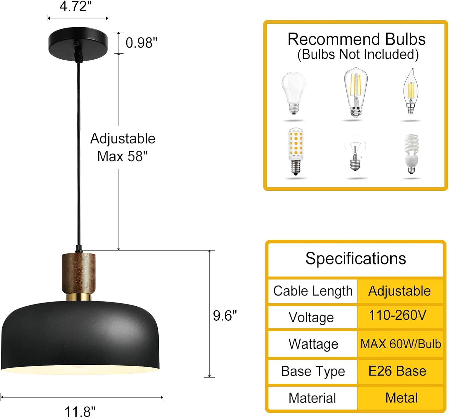 Compatible Bulbs: LED, Edison, CFL, Incandescent