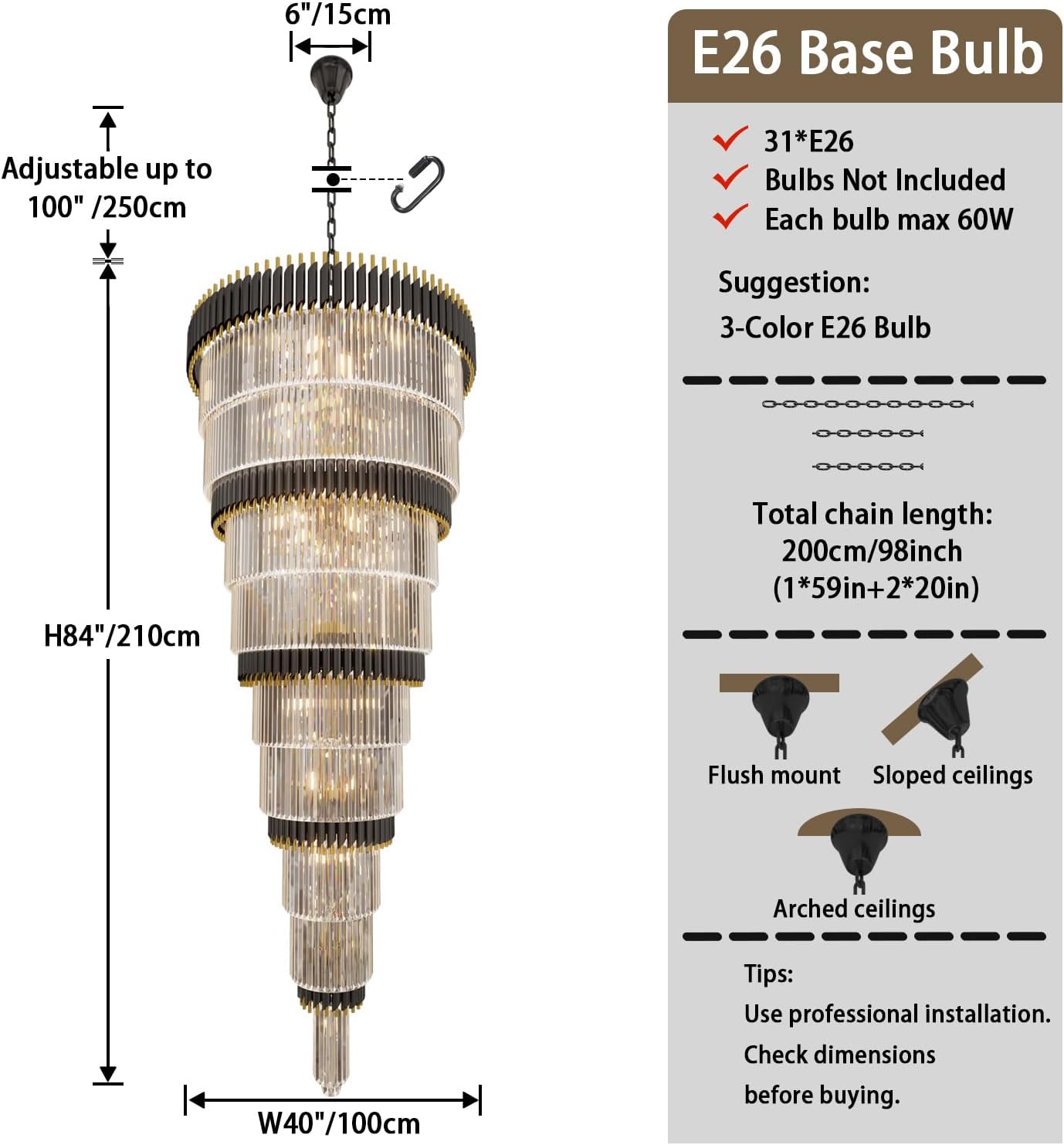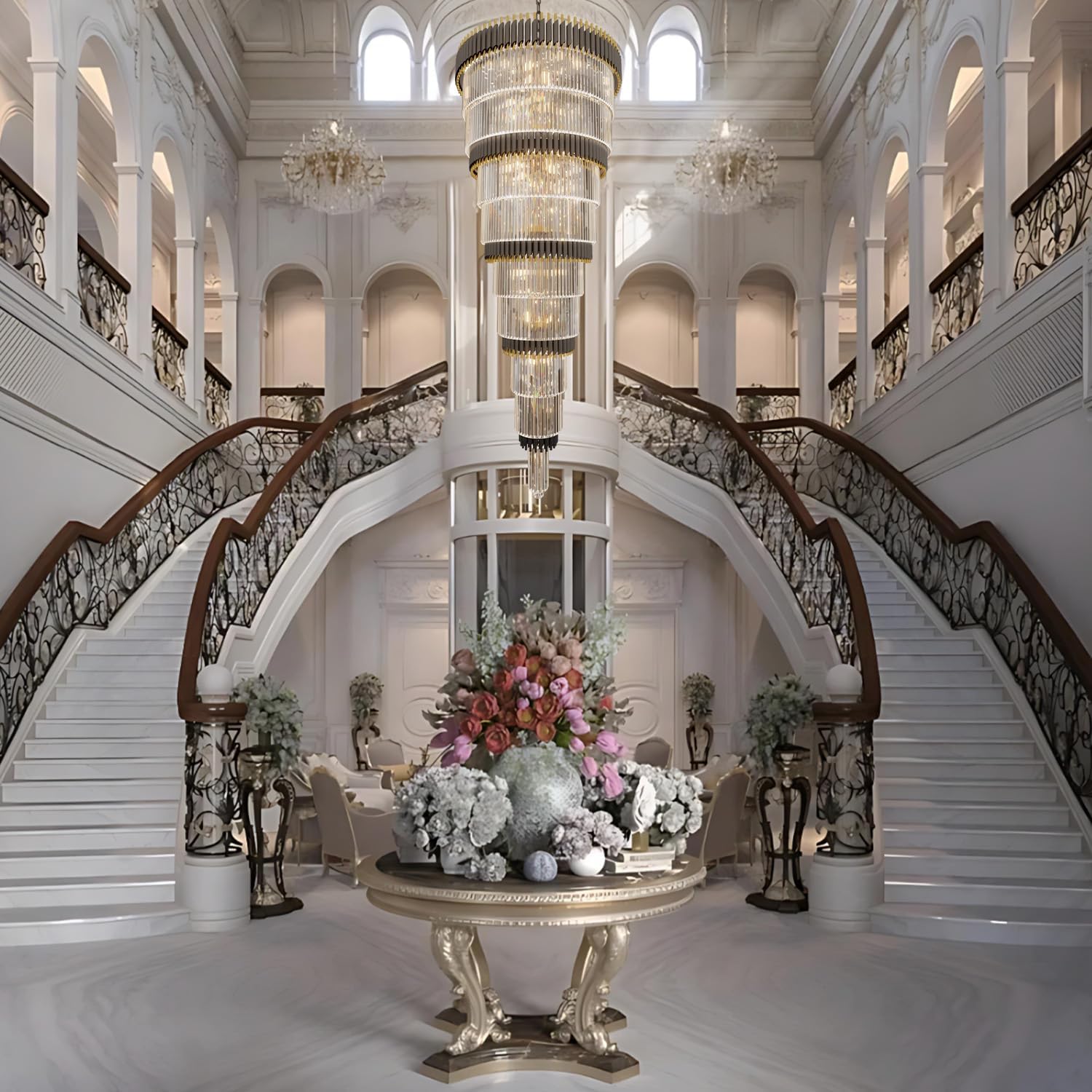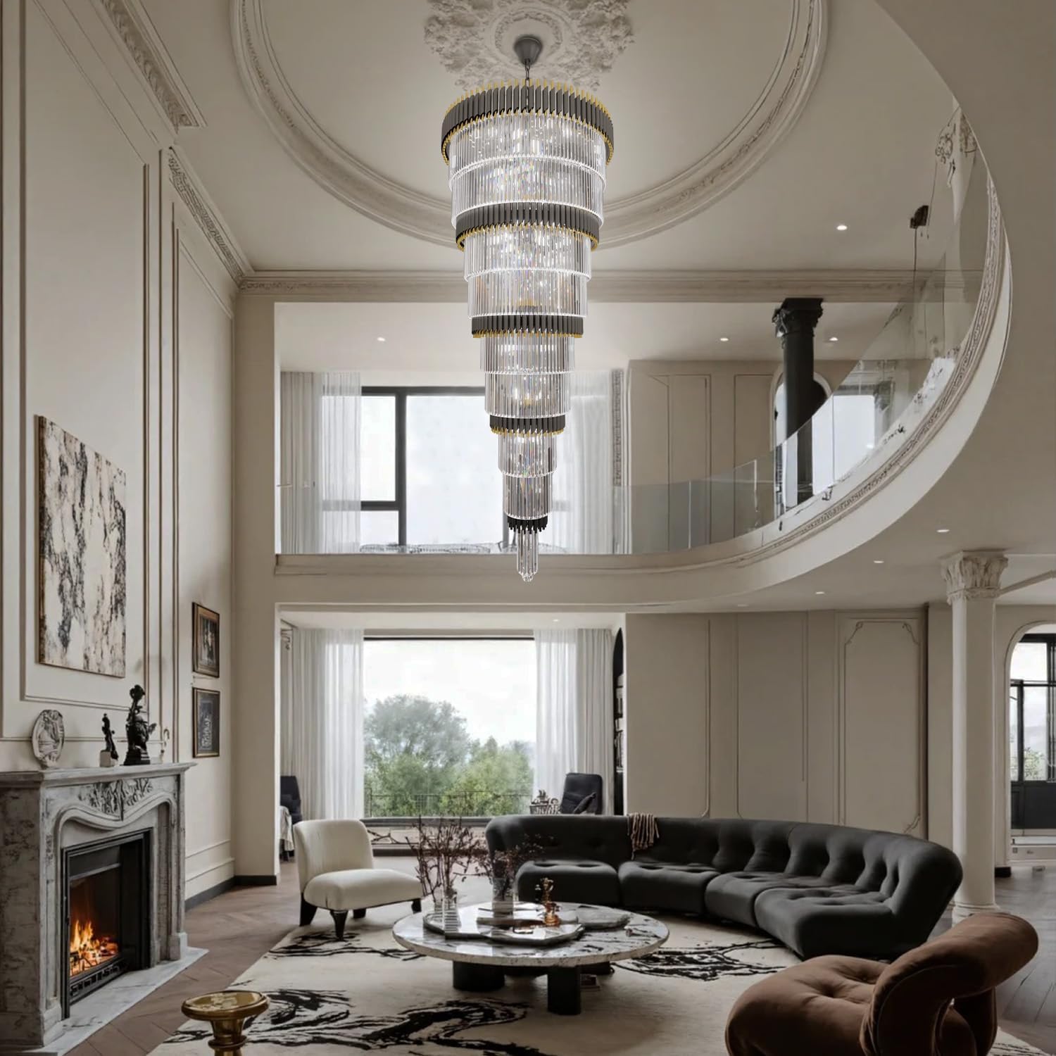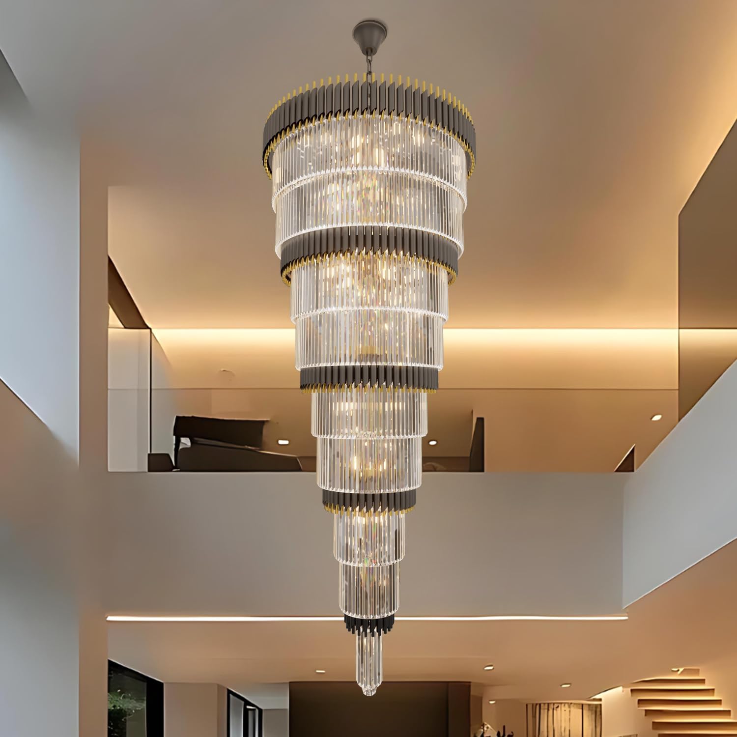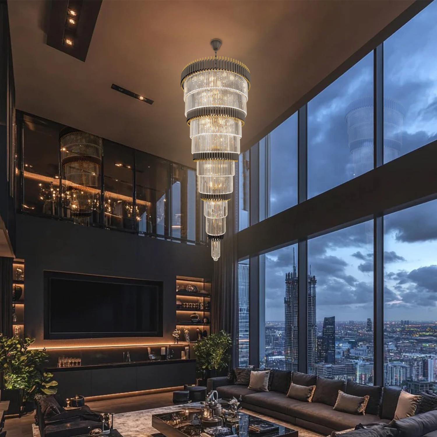 This modern luxury chandelier brings dramatic elegance with 31 E26 lights, hand-polished K9 crystals, and a bold tiered design. A statement piece for the most sophisticated interiors.
