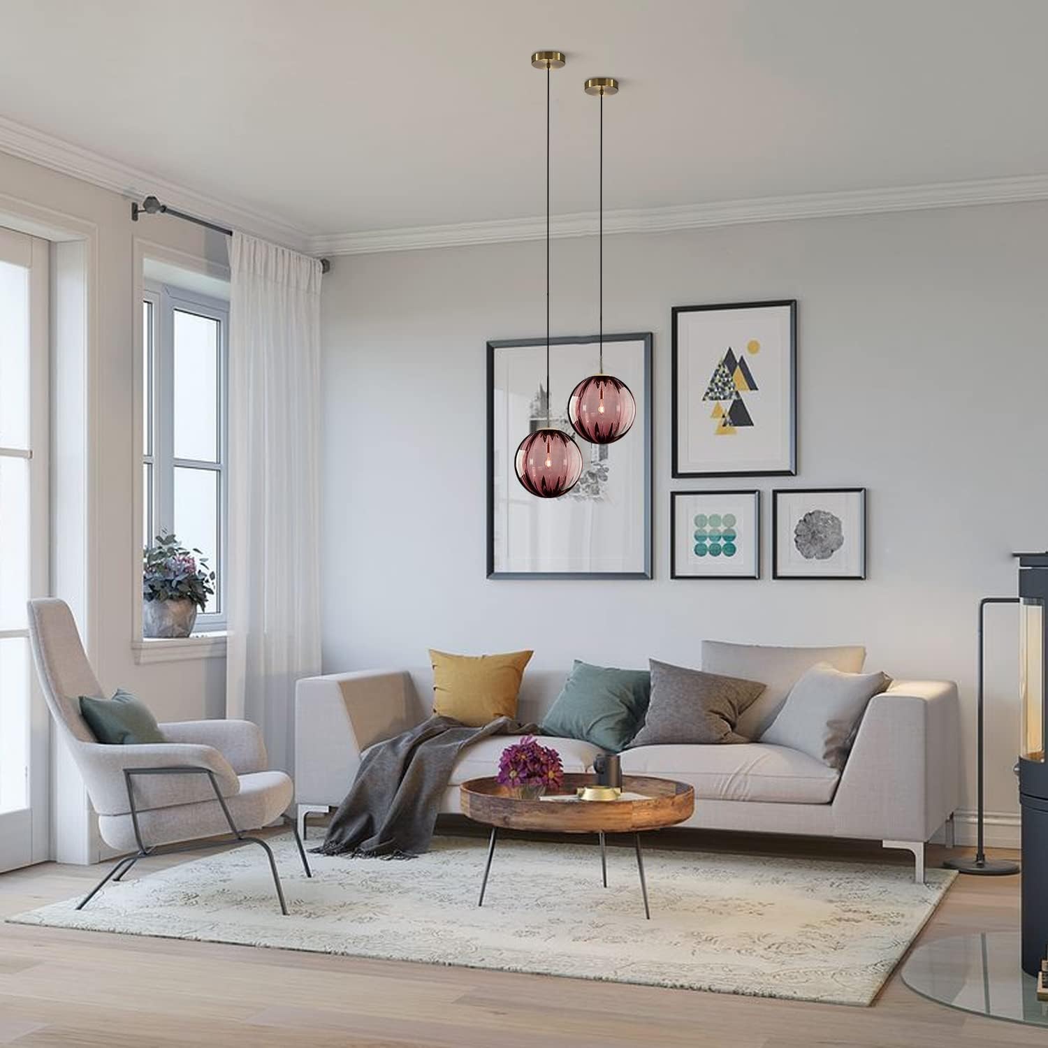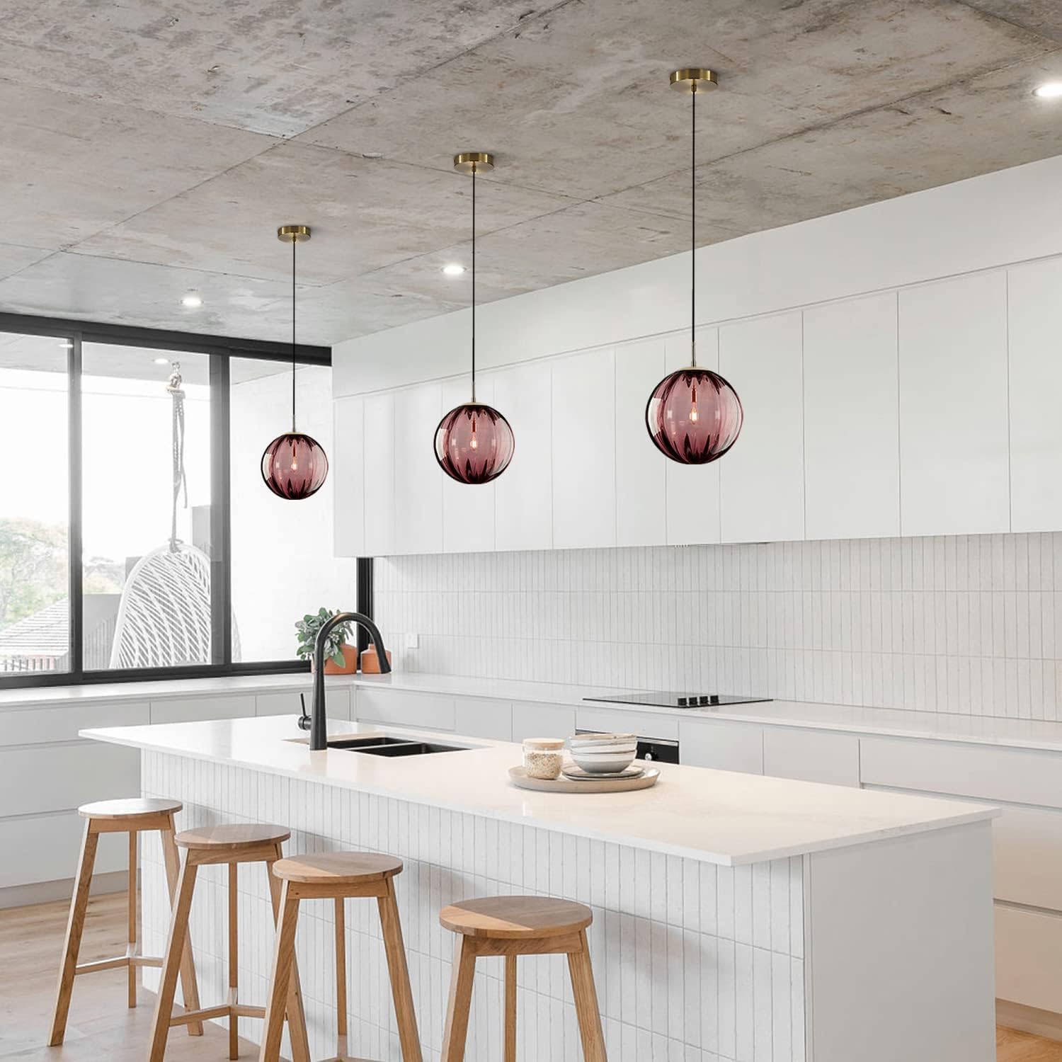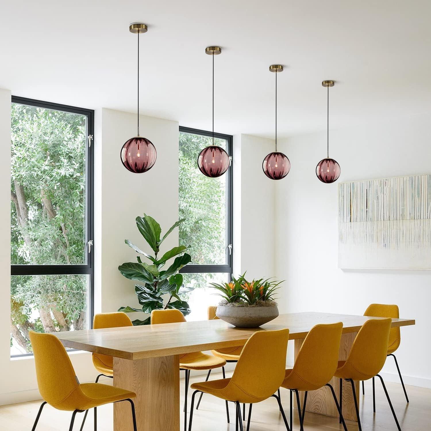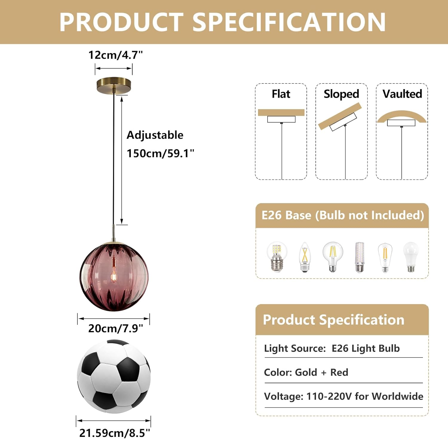 This elegant pendant lamp showcases a rich red globe shade made of hand-blown glass, suspended by a black cord and finished with a sleek gold ceiling mount. Designed with a 150cm adjustable hanging height and E26 base, this fixture blends luxury and functionality for contemporary homes and commercial spaces.