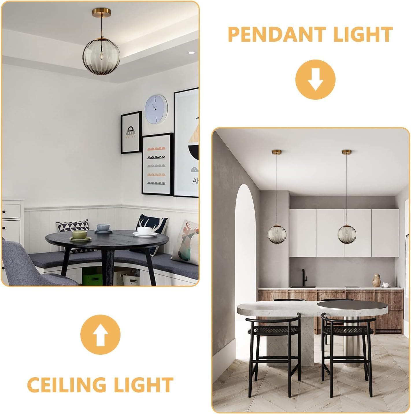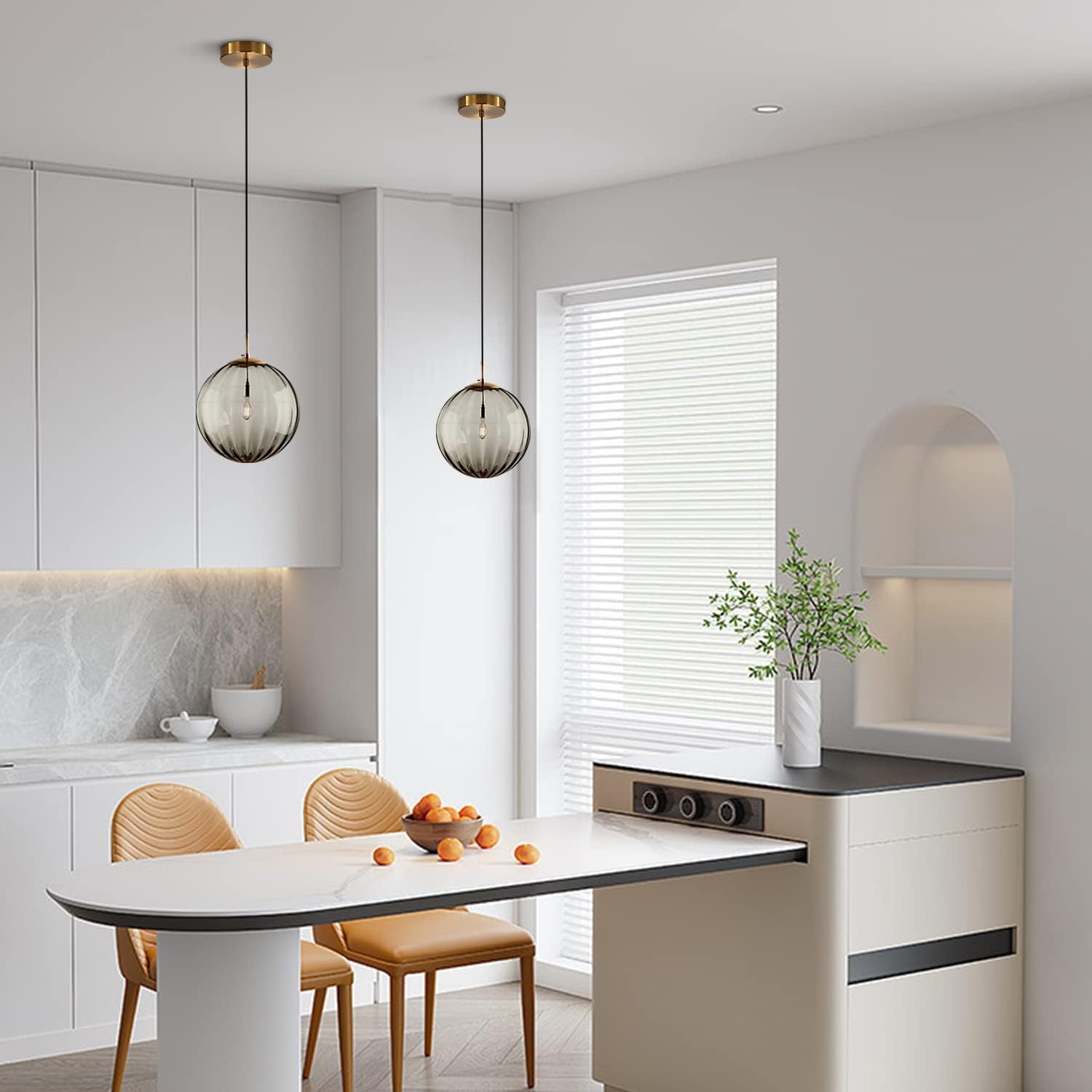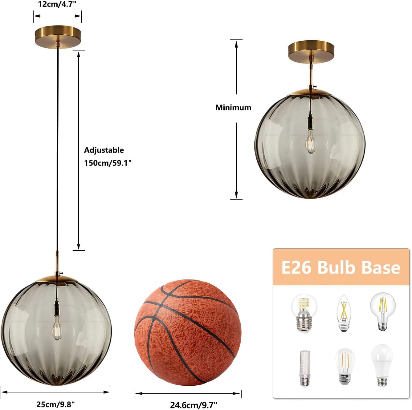 This elegant smoke glass pendant lamp features a hand-blown textured glass shade and a metallic gold fixture. The adjustable 150cm cord and standard E26 bulb base make it versatile for various spaces such as kitchens, dining rooms, and commercial areas. Stylish, minimal, and easy to install.