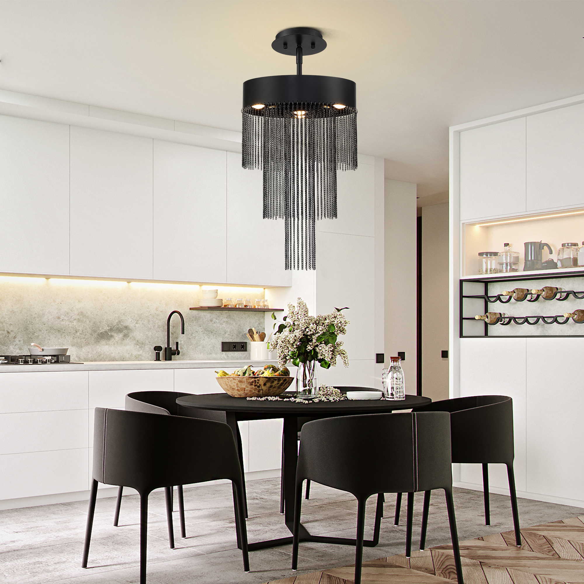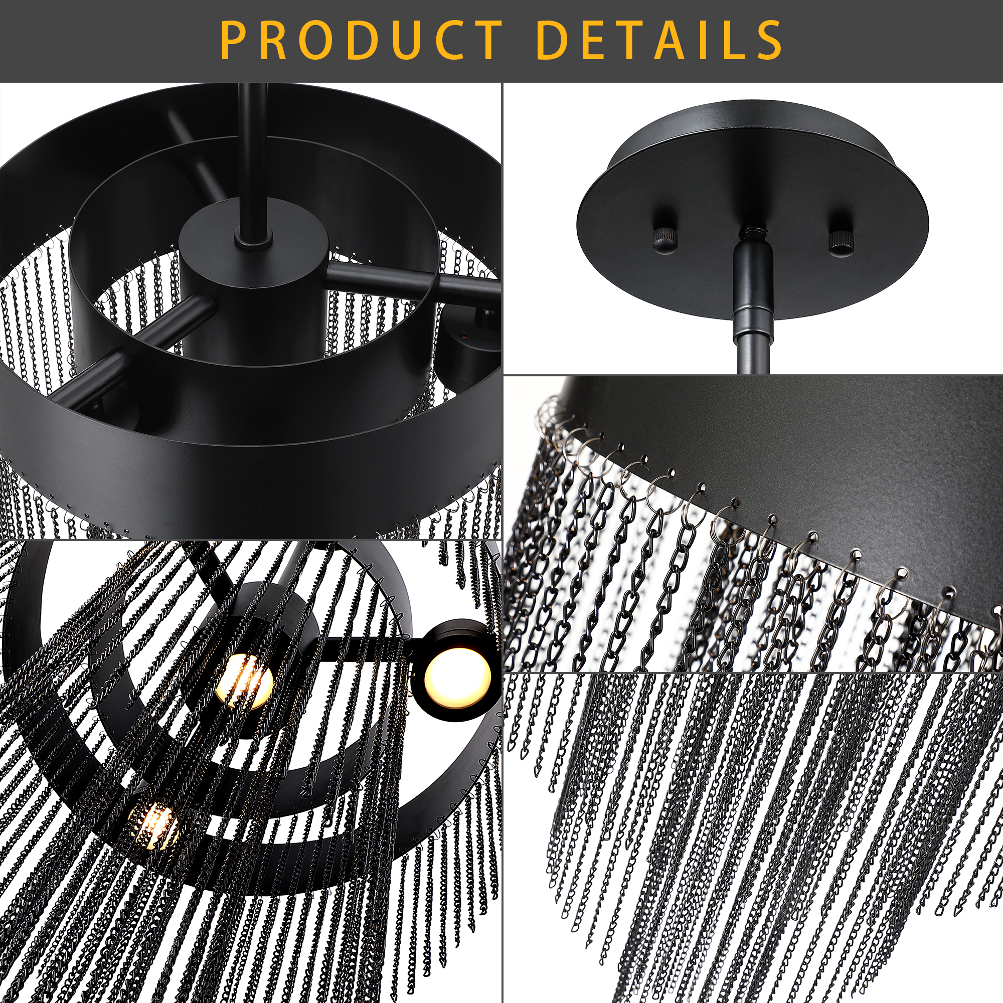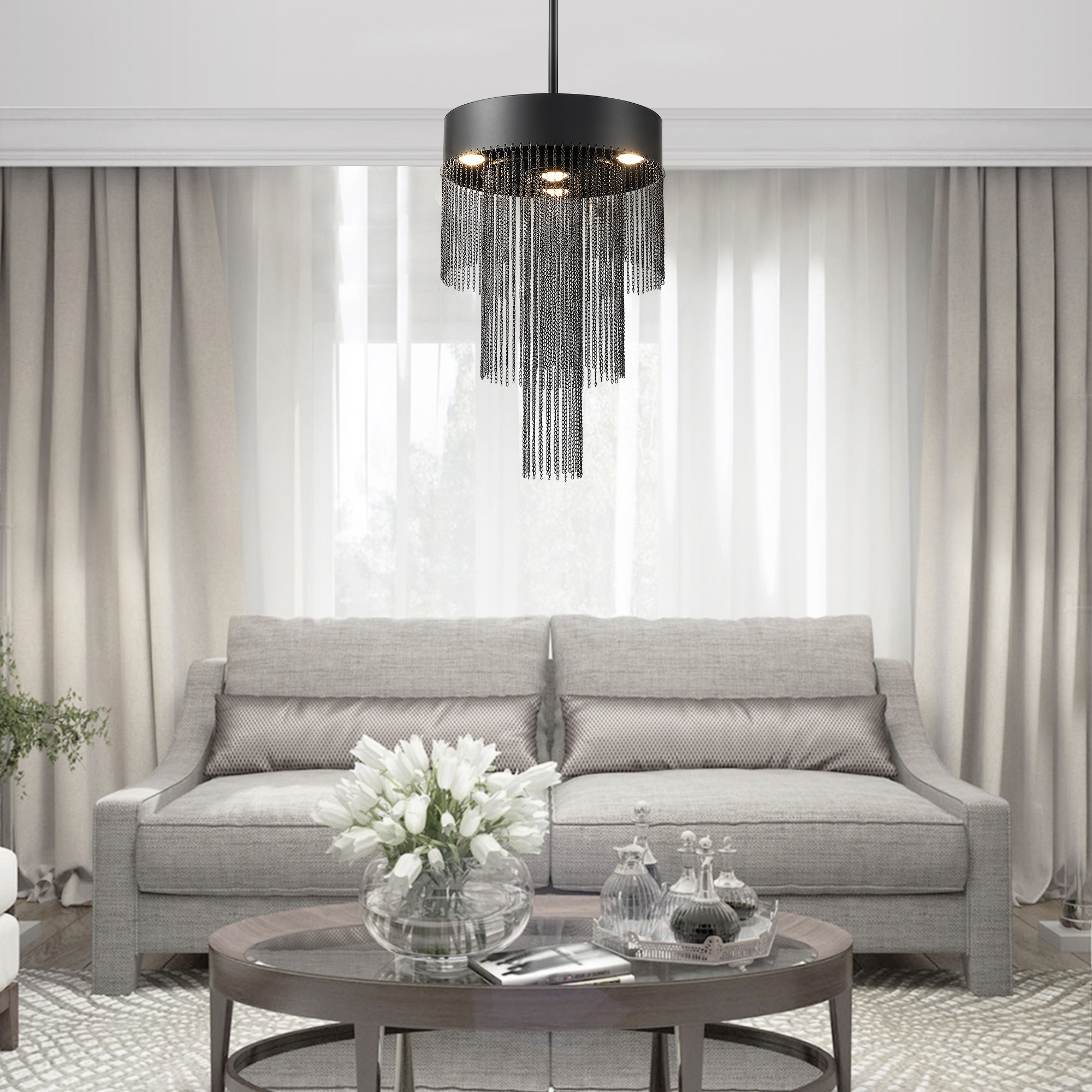 Product Name: Modern Black Chain Fringe LED Chandelier