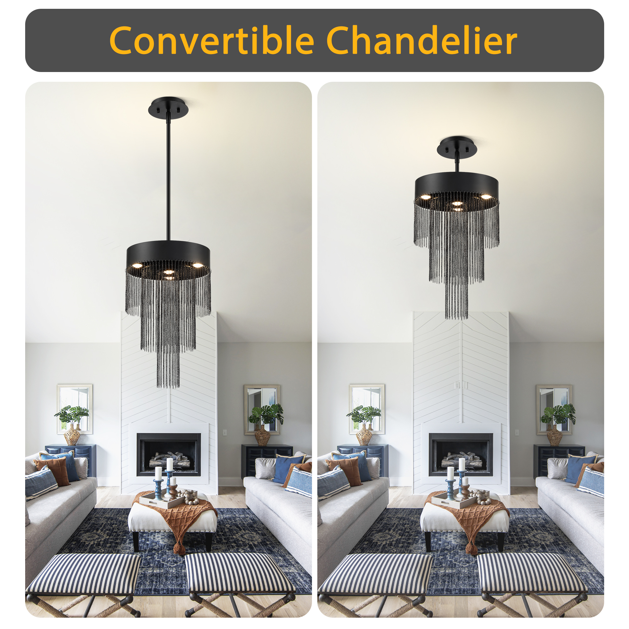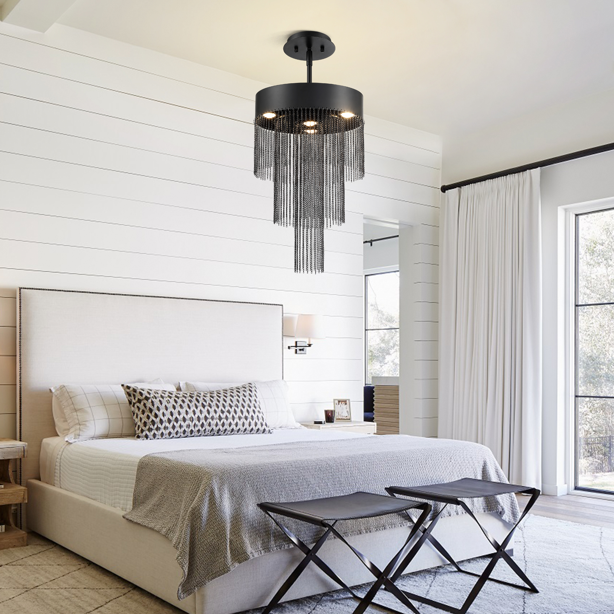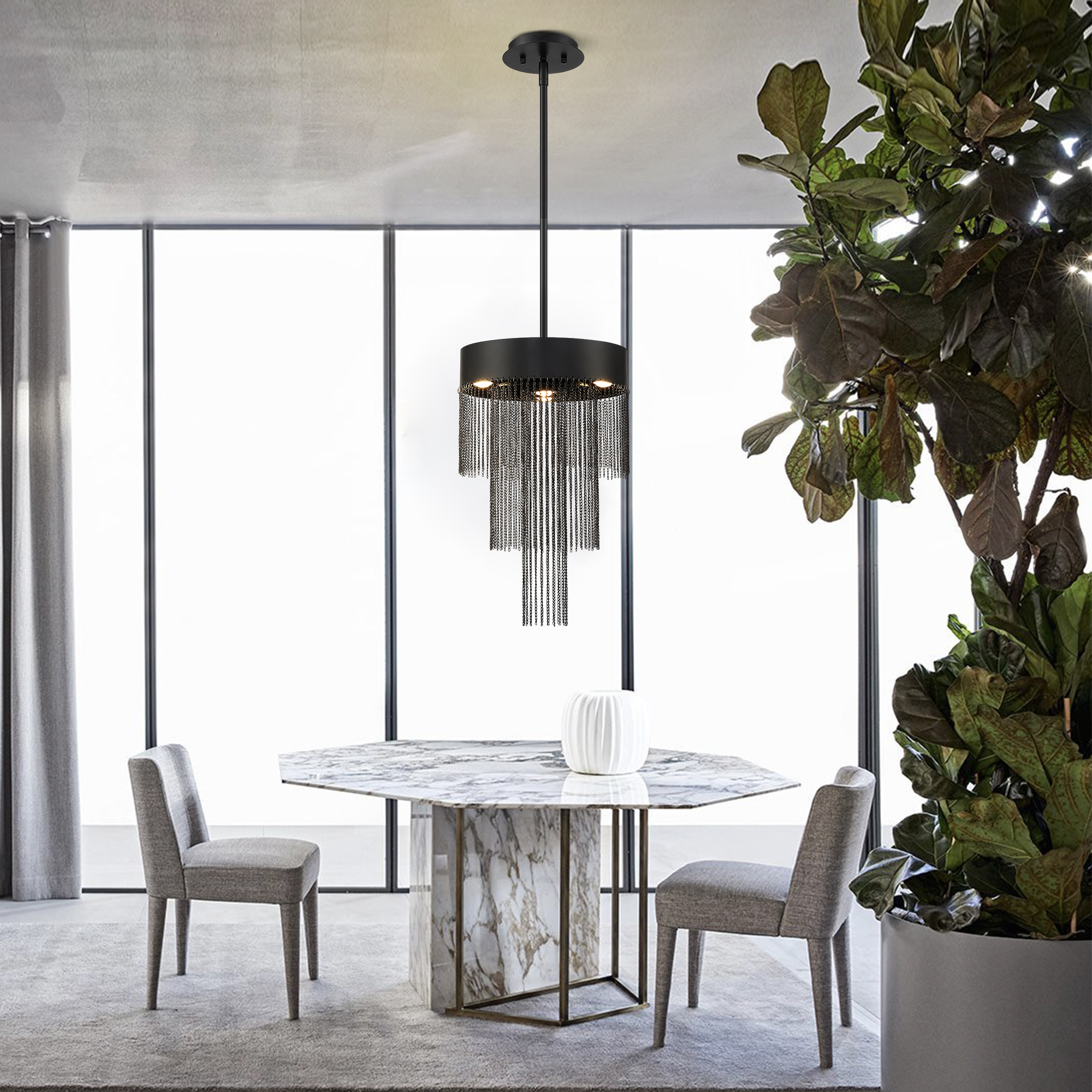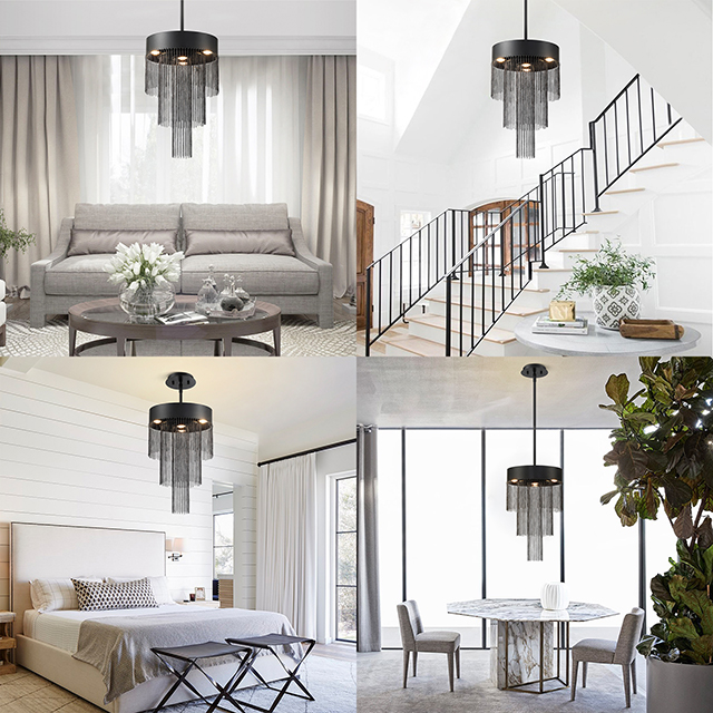 Product Name: Modern Black Chain Fringe LED Chandelier