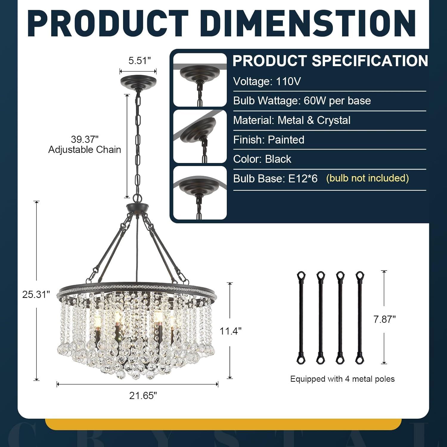 Chain Length: Adjustable up to 39.37"