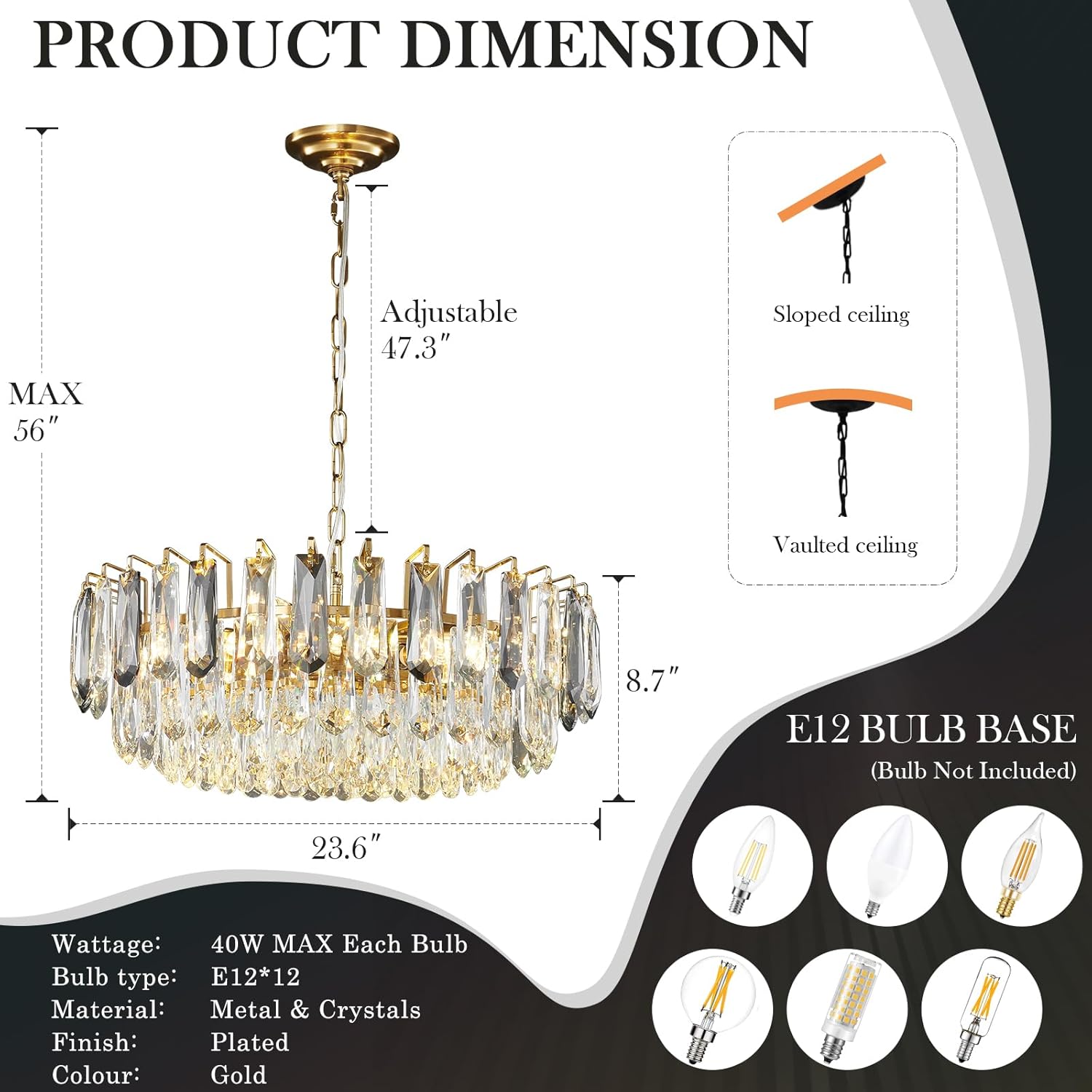 Light Source: 12 × E12 Bulbs (not included)